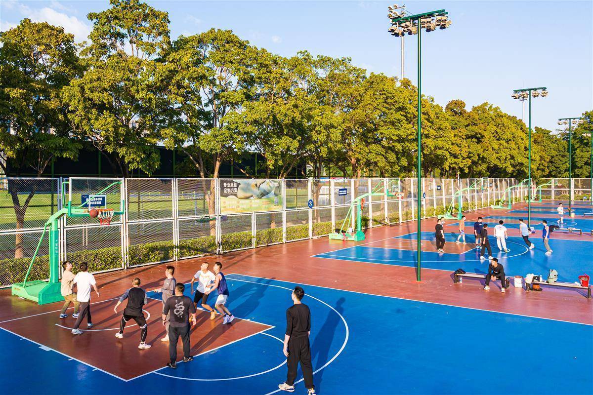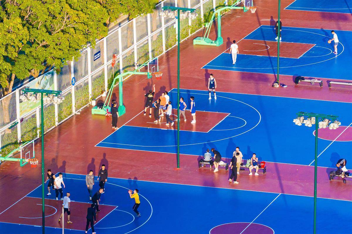 10月22日,市民趁着晴天气,在武汉塔子湖体育中心打篮球,与久违的阳光来个“拥抱”。(湖北日报全媒记者 任勇 摄)